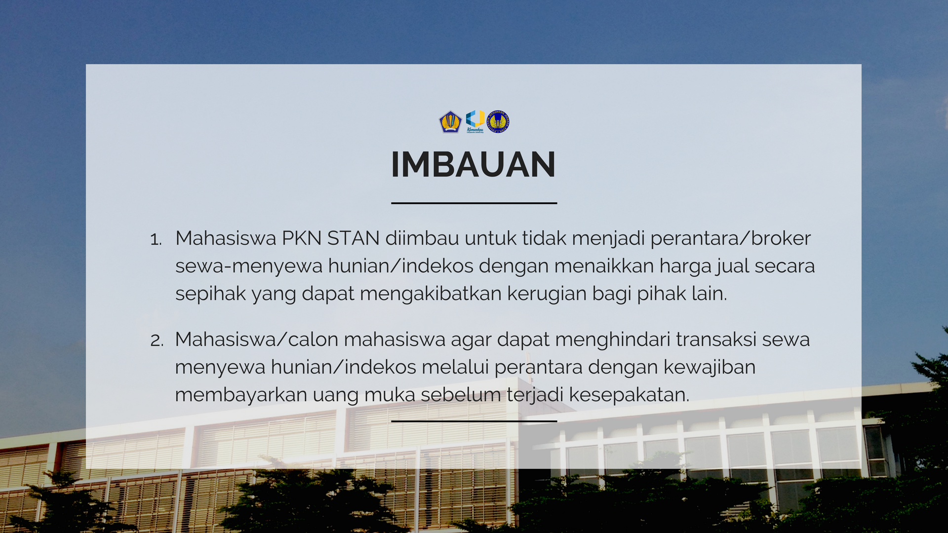PKN STAN on Twitter "Hai Staners Imbauan ini ditujukan bagi mahasiswa calon mahasiswa Politeknik Keuangan Negara STAN Kiranya hal ini dapat menjadi